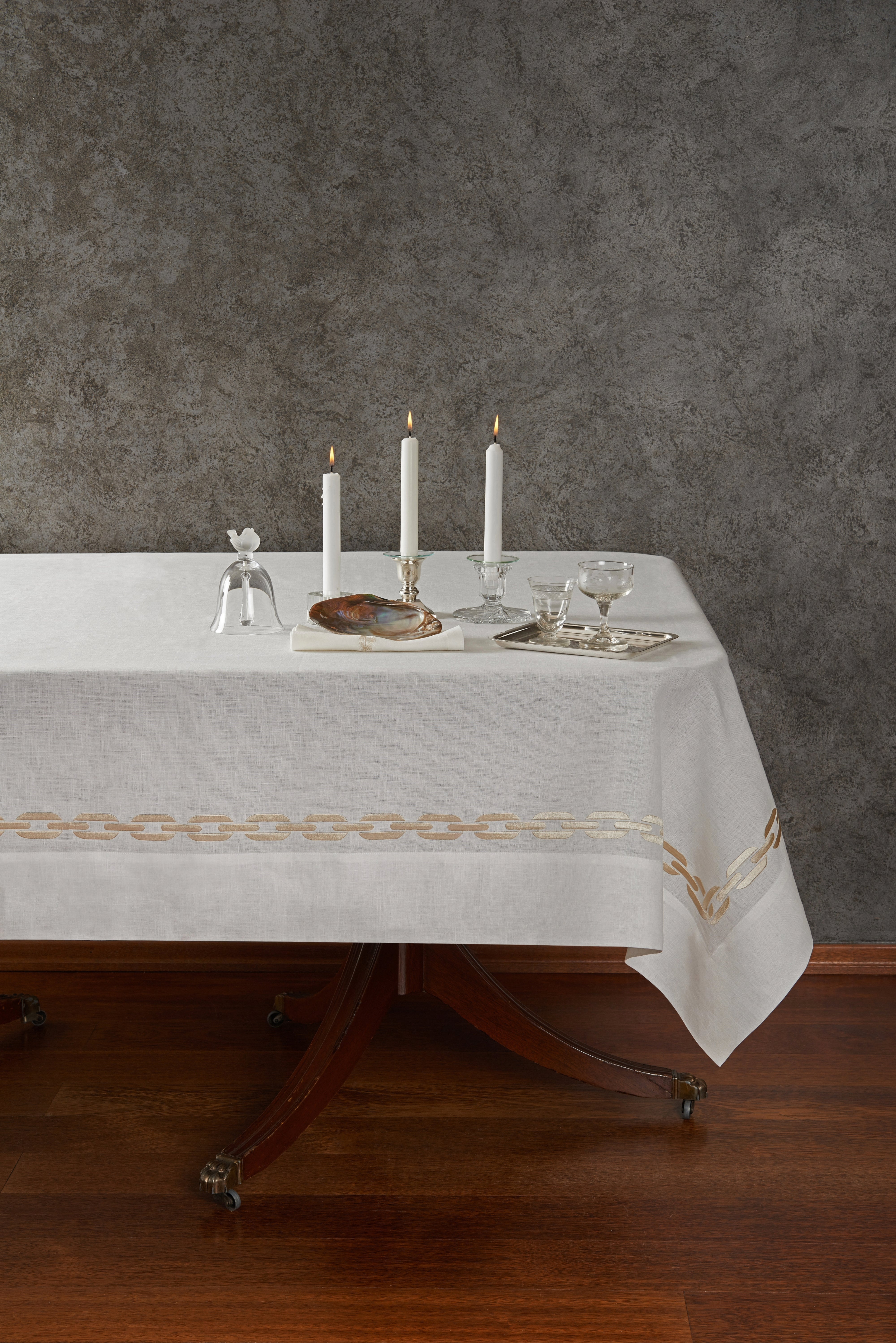 A refined staple for any host’s collection, the Chain tablecloth features a crisp embroidered link motif—simple, strong, and timeless. Offered in a range of bold and neutral thread colors to suit every table.