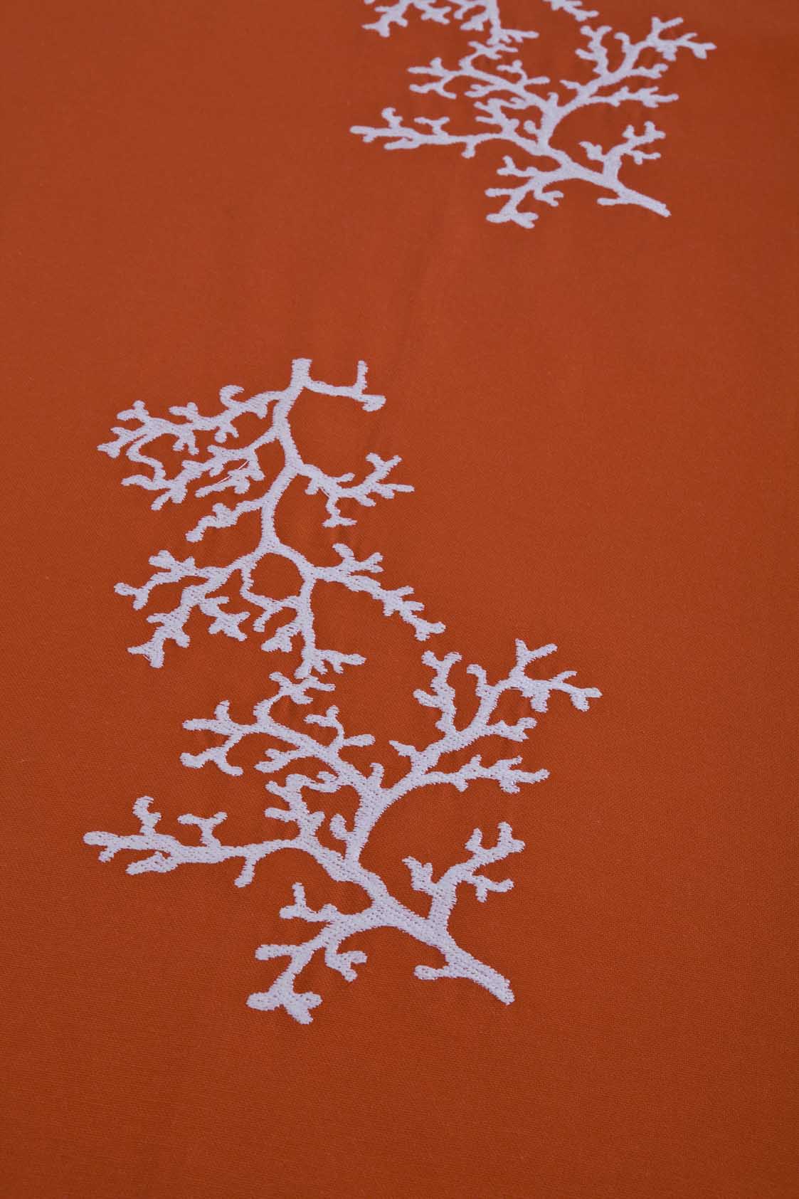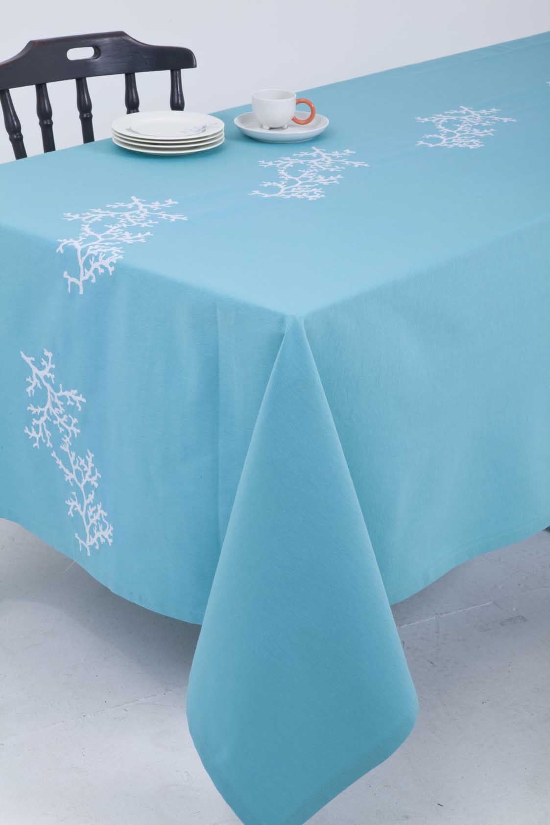 Vibrant coral motifs are delicately embroidered across fine textiles, capturing the beauty and rhythm of the sea. Available in striking colorways—from crisp white with coral red to serene turquoise—the Coral tablecloth brings a touch of coastal elegance and Mediterranean charm to your dining setting.